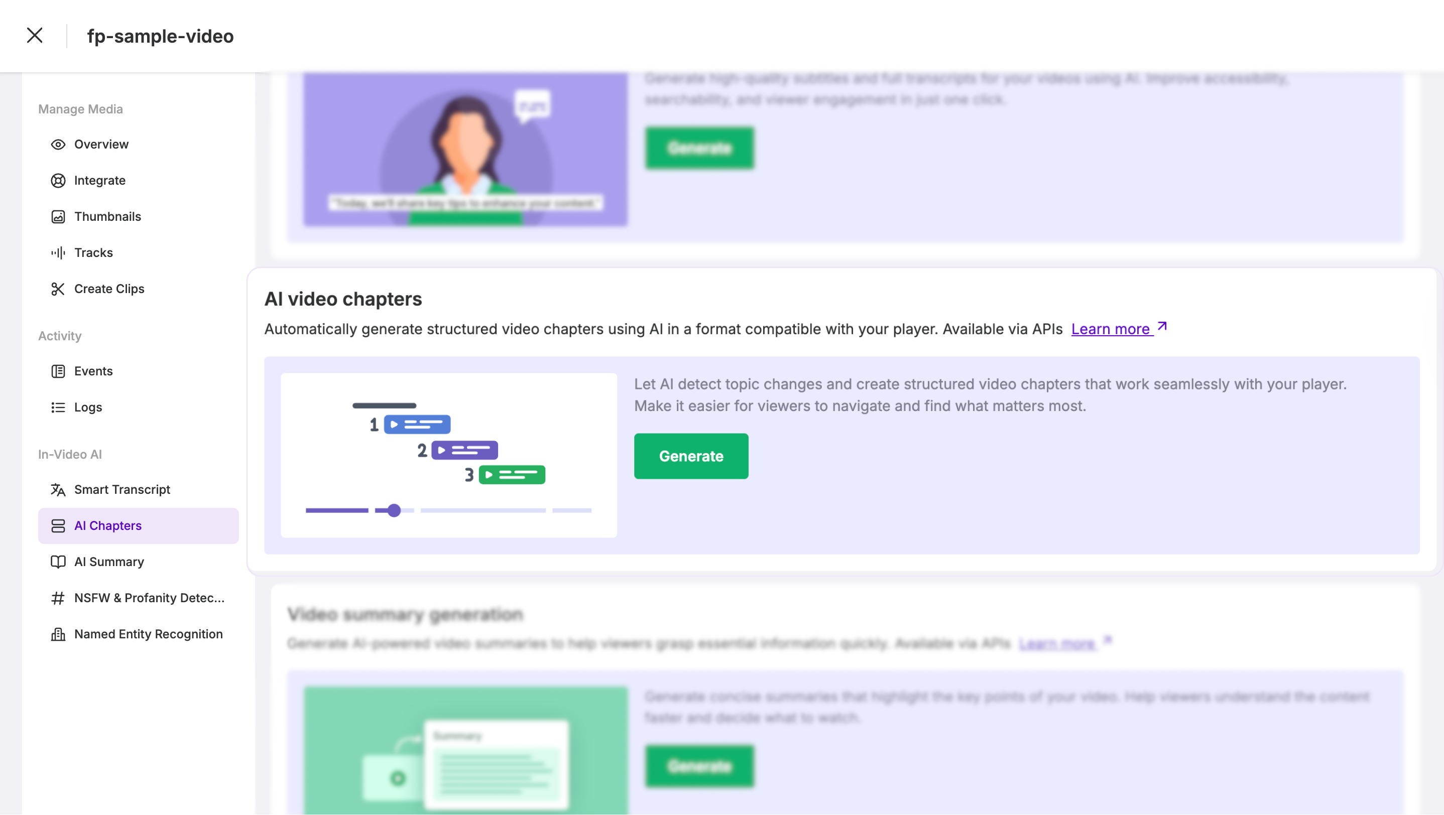 FastPix In-Video AI supports this workflow through an API-based processing pipeline. In-Video AI runs scene detection as part of the standard processing step. No model training, no separate infrastructure. You upload a video, and scene-level data comes back alongside the encoded output.